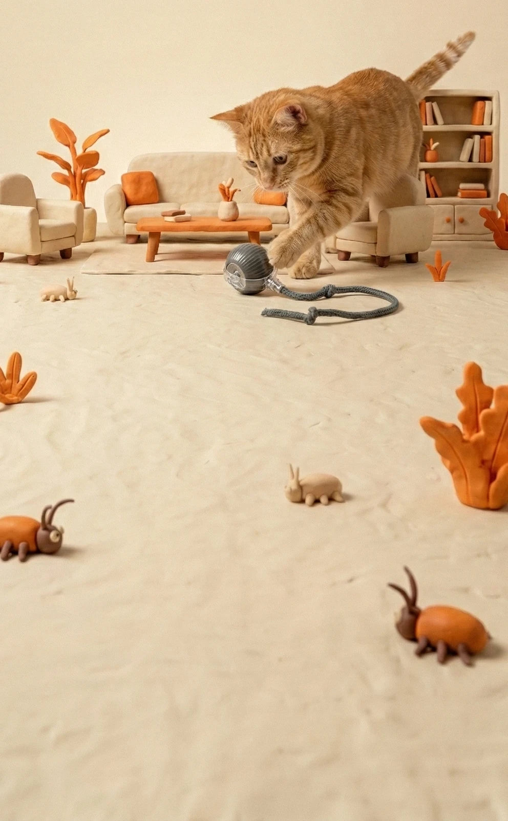 InsideCat designs toys that bring the outside in by recreating natural movement: rolling, flapping, teasing, and pausing. Our products combine natural behaviors with clean design, quiet motors, and calming textures — enriching the emotional, physical, and instinctual needs of indoor cats in a way that feels safe, simple, and joyful.