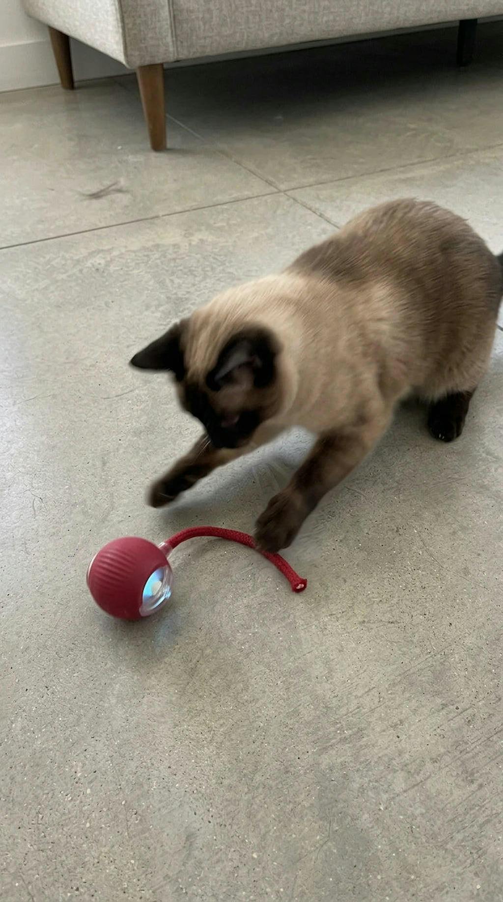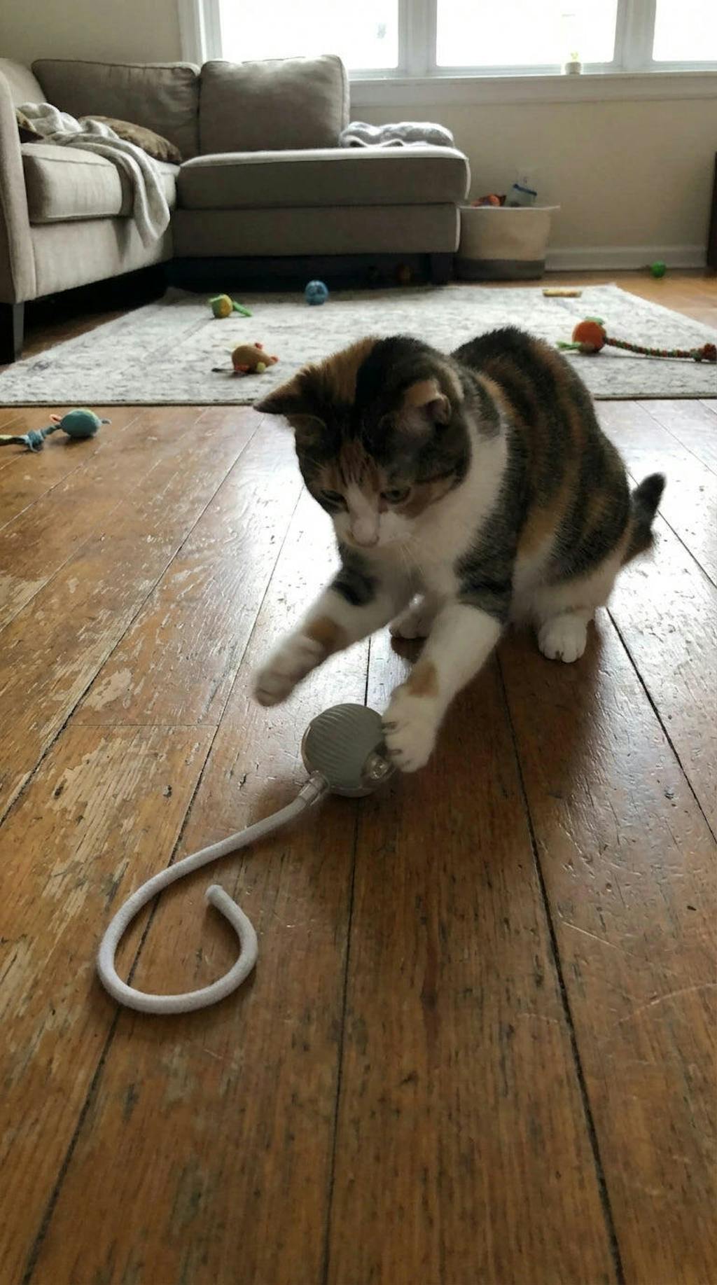 The spinning motion is so simple but it triggers that chase instinct instantly. He’s usually picky and this passed the test.